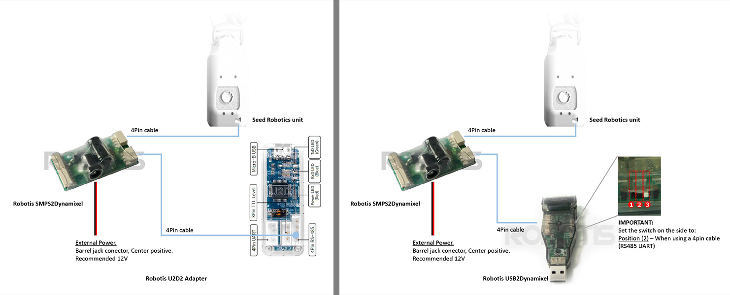 (Using Robotis SMPS2Dynamixel + USB2Dynamixel or U2D2)